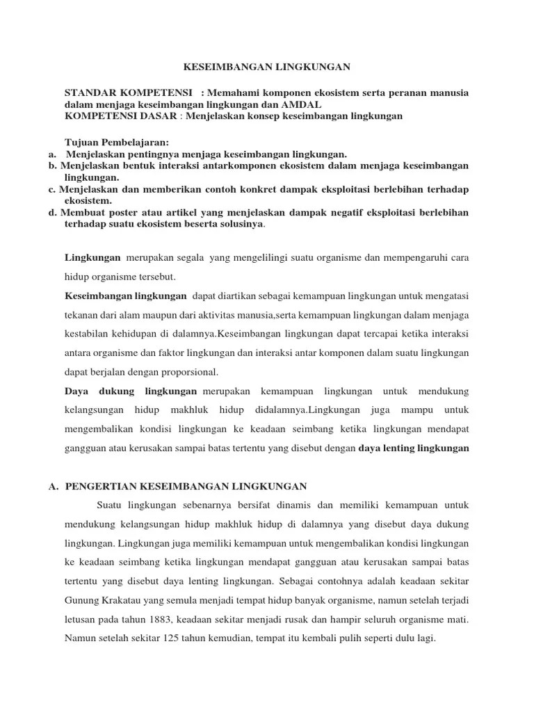 Lingkungan, kemandirian, serta dengan menjaga keseimbangan. Disisi lain, makin maraknya industri besar yang berdiri serta kehidupan masyarakat yang tidak peduli terhadap lingkungan sekitarnya menambah permasalahan yang . 6 aca sugandhi, tata ruang dalam lingkungan hidup. Bahwa semangat otonomi daerah dalam penyelenggaraan pemerintahan negara. Mengadakan penyuluhan dan sosialisasi dalam menjaga keseimbangan lingkungan.